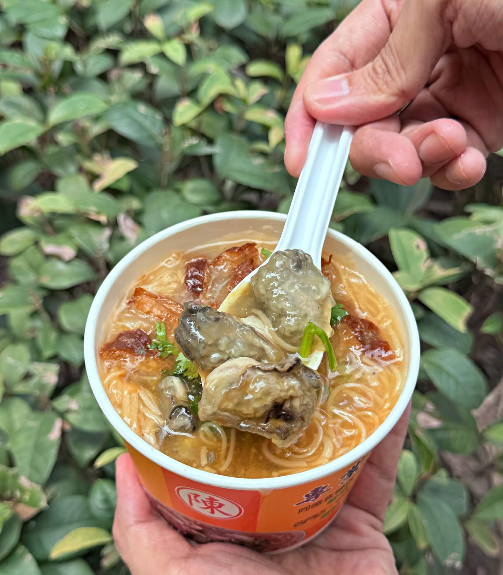 拿到麵線後的阿青真的忍不住秒殺啦!每一口都是滿滿的好料。