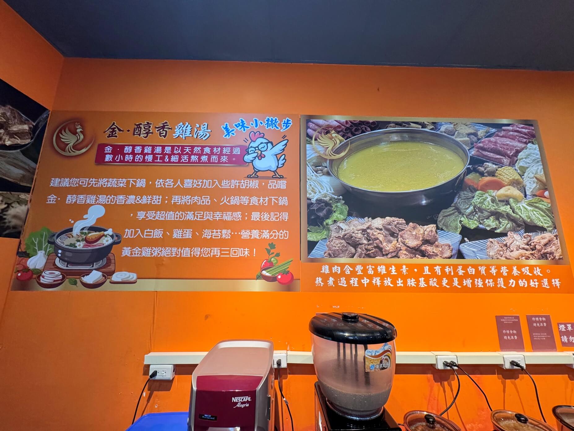 這邊主打的是金·醇香雞湯,還可以加入多種的蔬菜、肉品、海鮮和胡椒,再加入多種好料,就可以享受到金·醇香雞湯的多種蔬菜、肉品和蔬菜吃到飽喔!