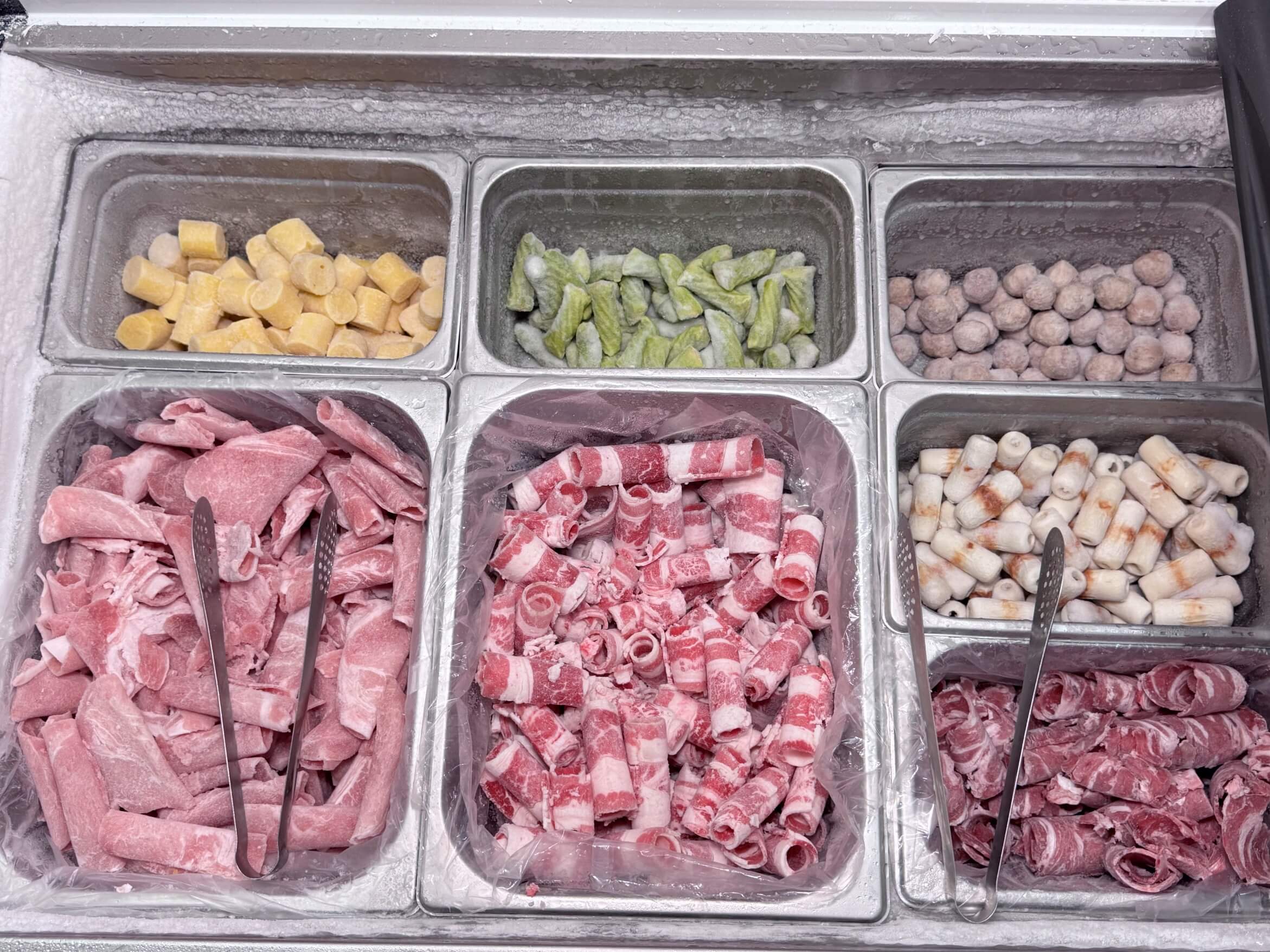 這邊的自助區有超多種的好料,像是牛肉豬肉羊肉,重點是這些肉通通是原肉!還有多種火鍋料也都是讓你吃到飽!