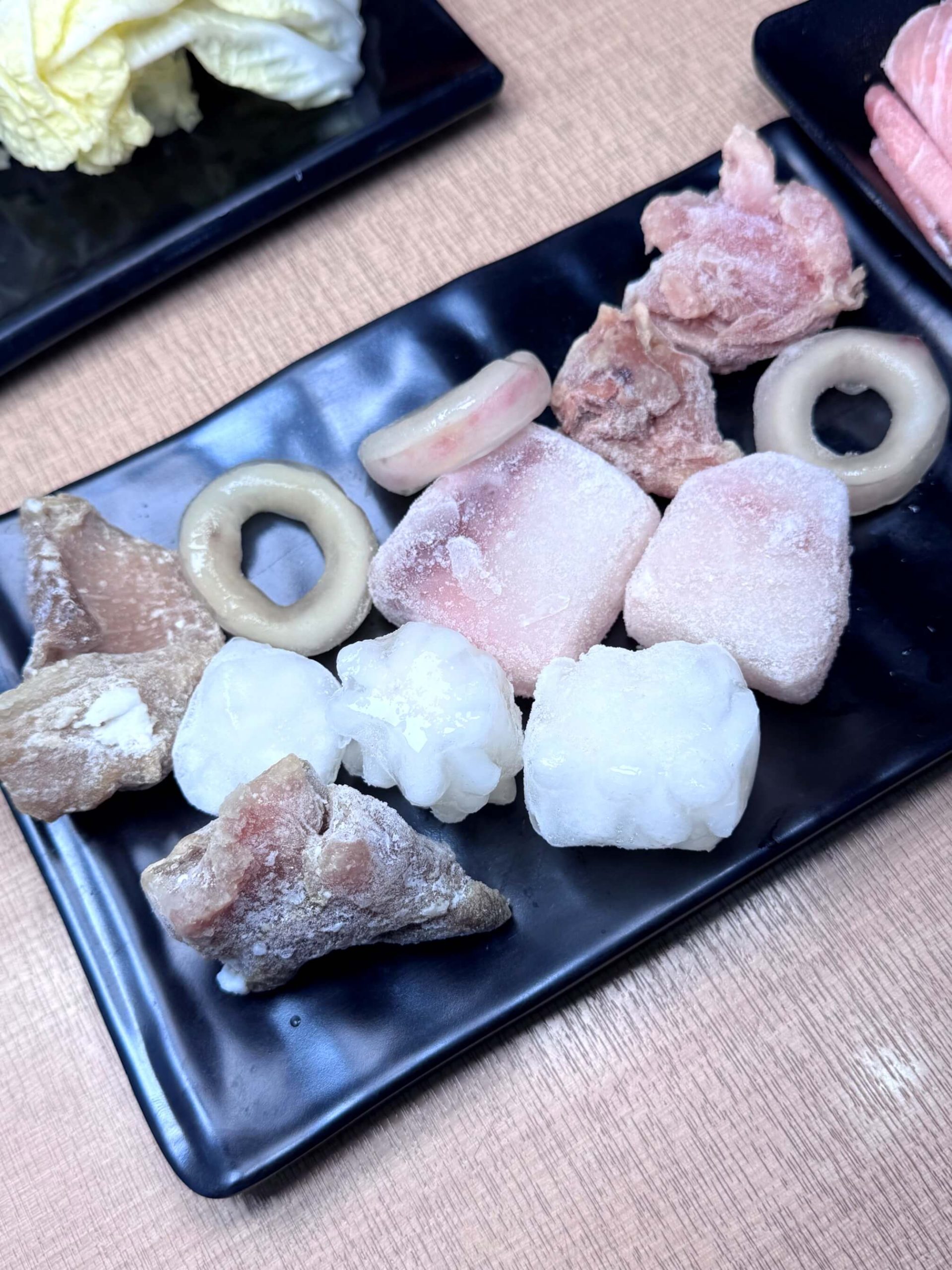 這邊還可以吃到外面比較少見的食材,像是雞肉塊、魷魚圈、豬肚、鯊魚丁和刻花魷魚!