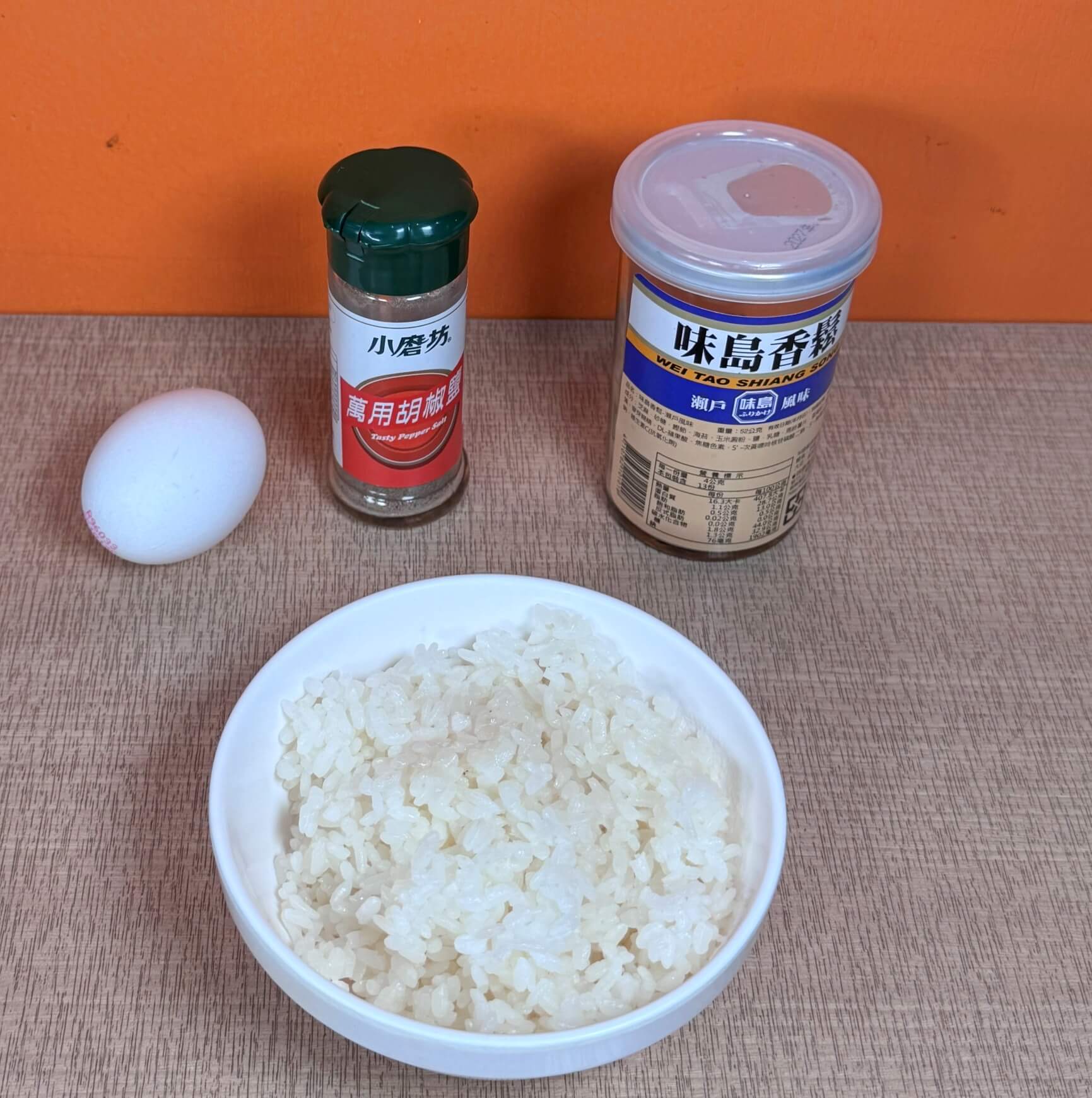 吃完金·醇香雞湯別急著離開喔!這邊還有提供自助雜炊呢~先到自助區拿白飯、胡椒粉、蛋和海苔粉。