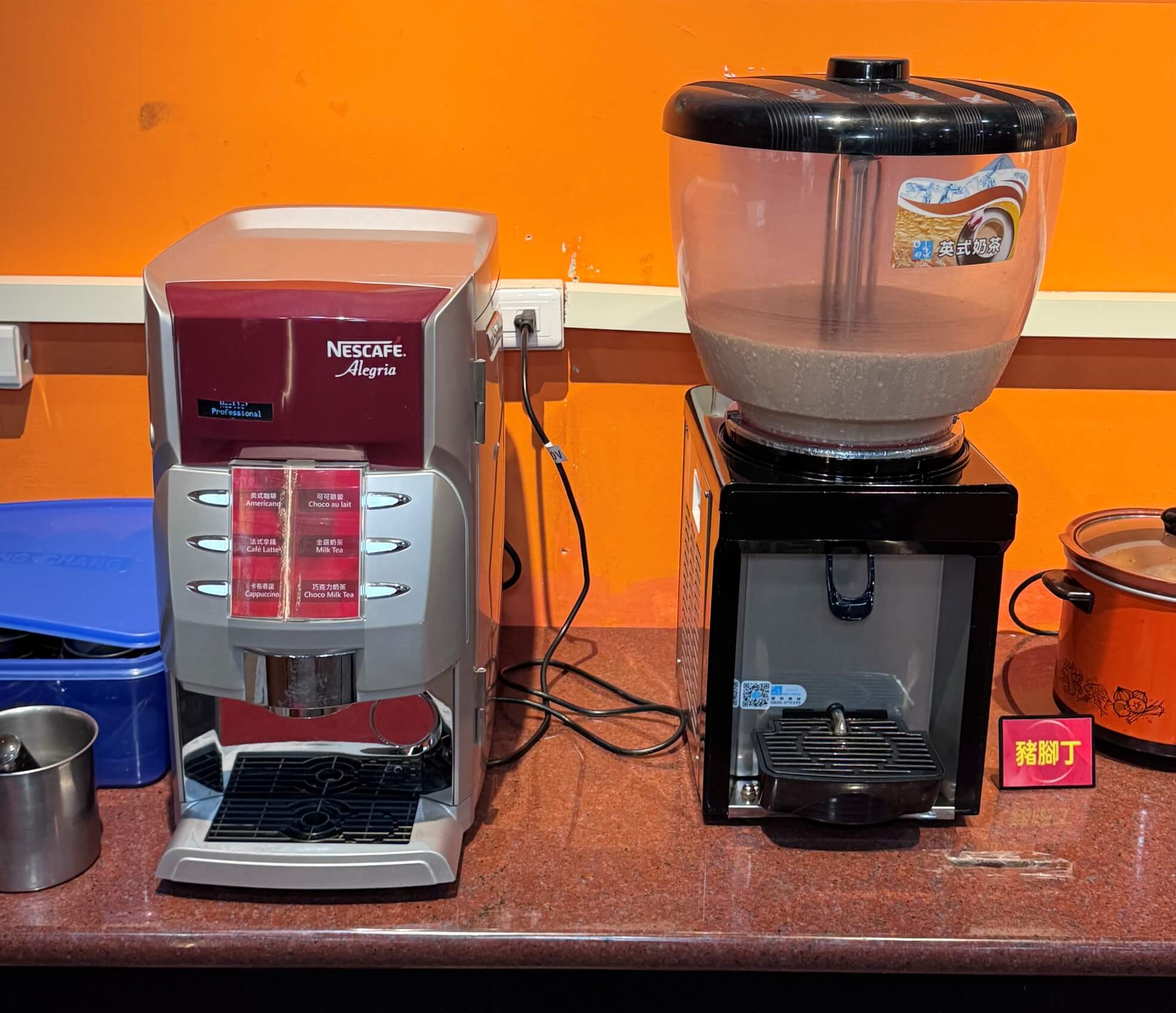 這邊提供的飲料選擇也相當地多樣化。像是奶茶和咖啡也有。