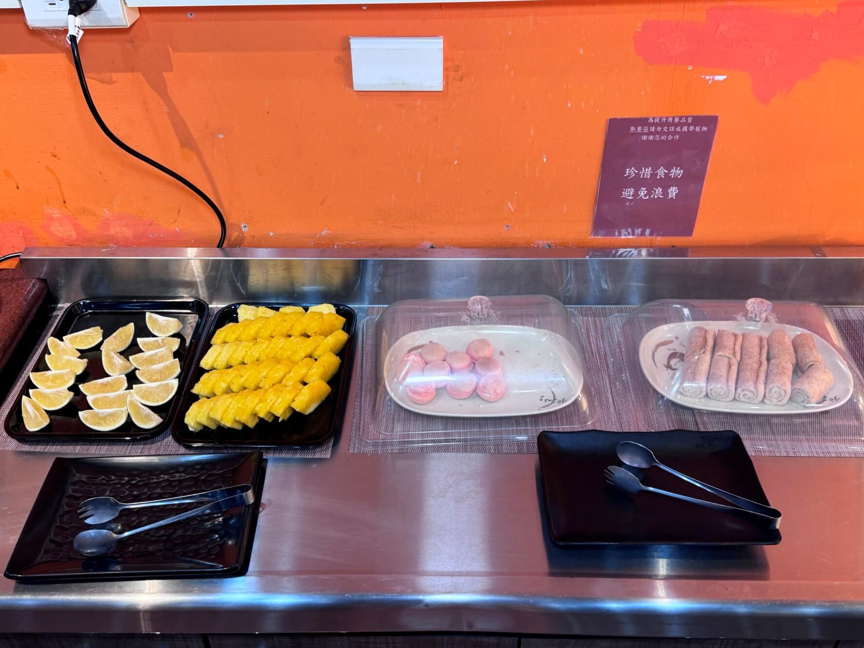 這邊還有新鮮的水果和蛋糕捲,還有台式馬卡龍呢!真的都是台灣人的最愛。