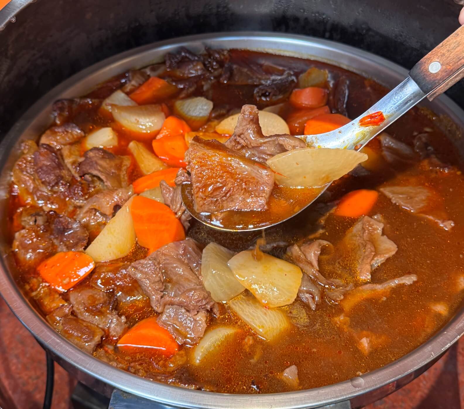 這一大鍋的紅燒牛肉可說是下重本啊~滿滿的牛肉還有超多的蔬菜吃起來超過癮。