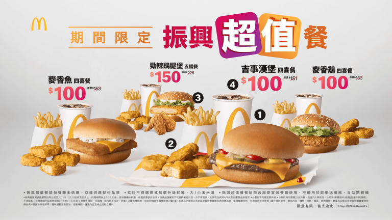 麥當勞史上最振的振興方案來了!而且餐點的組合超多樣,振興有感,為你精打細算,像是經典的漢堡鷄塊薯條飲料4件居然只要$100,很多經典組合居然都只要100元整就能吃到,根本就是打了六折超厲害,想必這個活動又會造成風潮啦!