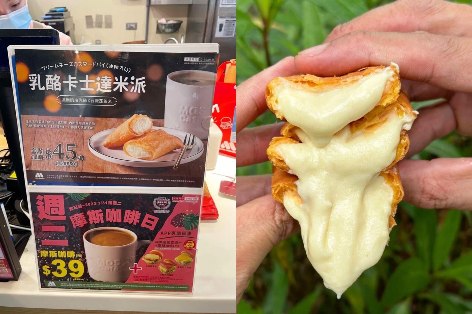 摩斯出新品啦!乳酪卡士達米派咬下有滿滿的內餡好狂啊!