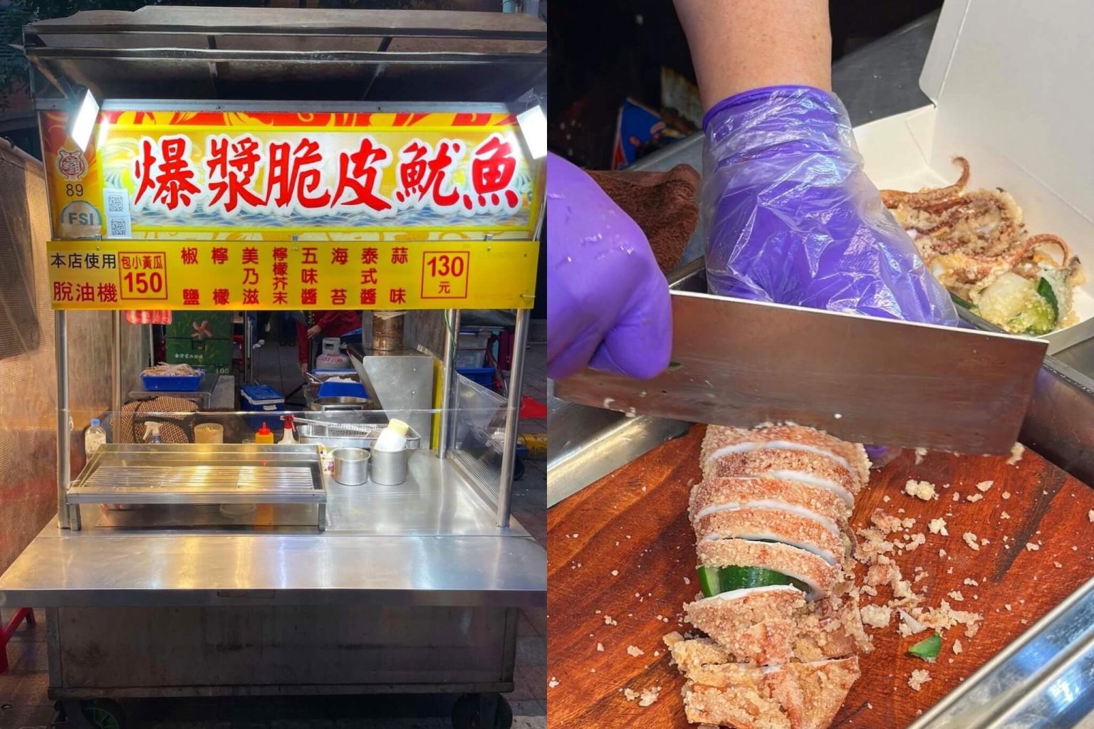 寧夏夜市「爆漿脆皮魷魚」超肥嫩炸魷魚裡面包了超大的小黃瓜!